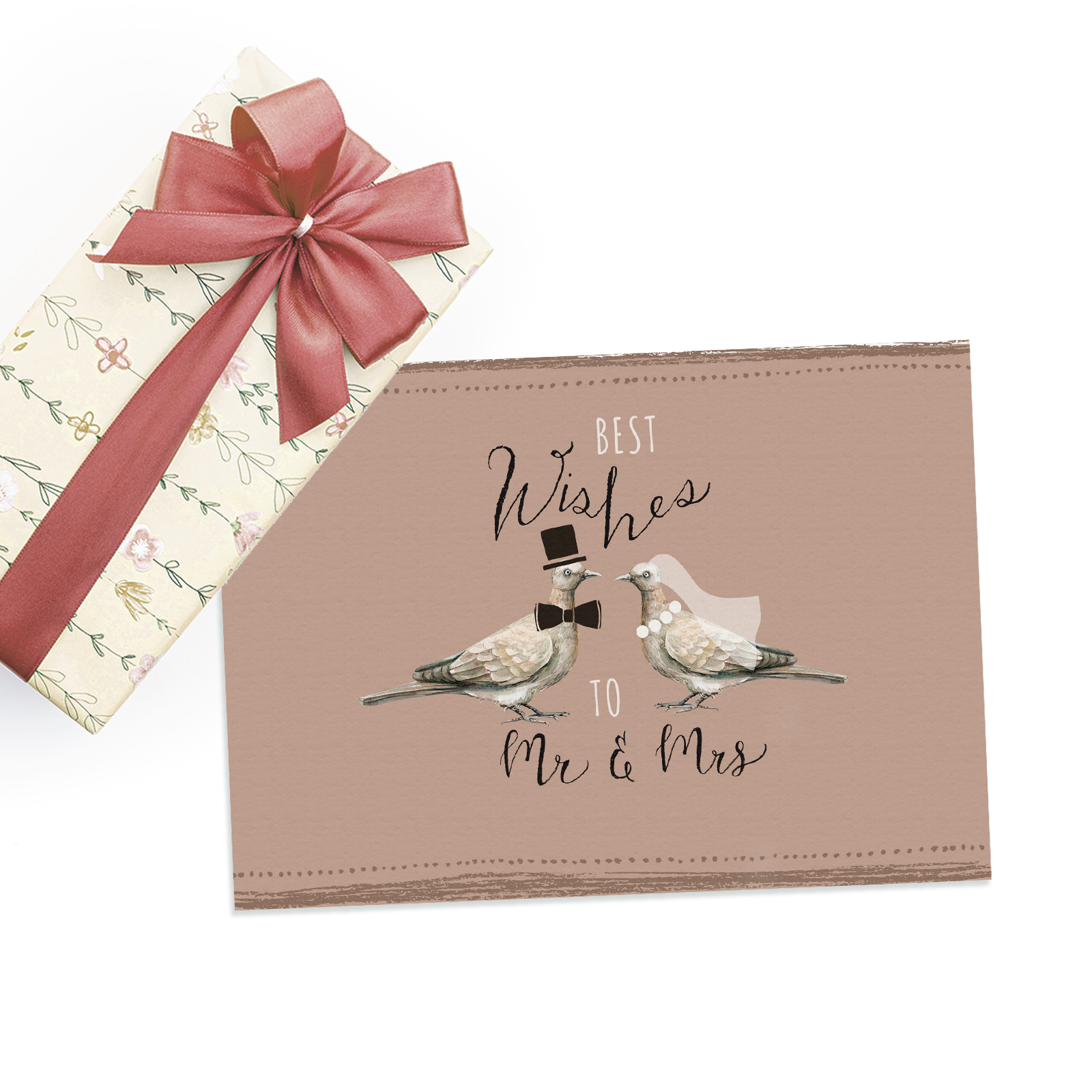 Eine elegante Hochzeitskarte in warmen Naturtönen, versehen mit zwei zarten Tauben – dem klassischen Symbol für Liebe und Treue. Handlettering-Elemente verleihen dem Design Modernität. Der Bibelvers aus Psalm 115,15 spricht den frisch Verheirateten Gottes Segen zu.Text: