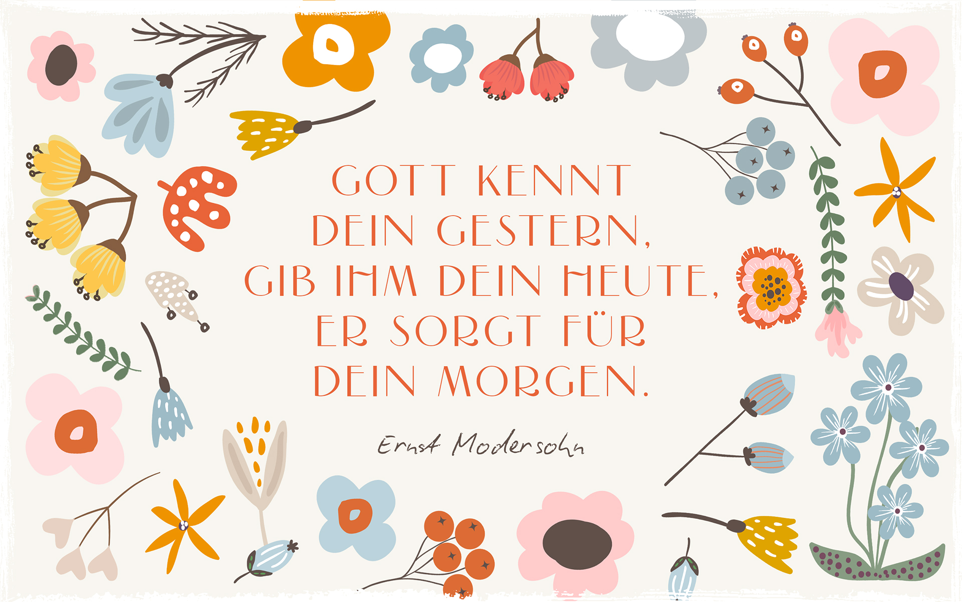 „Gott kennt dein Gestern, gib Ihm dein Heute, Er sorgt für dein Morgen.“ — Ernst Modersohn