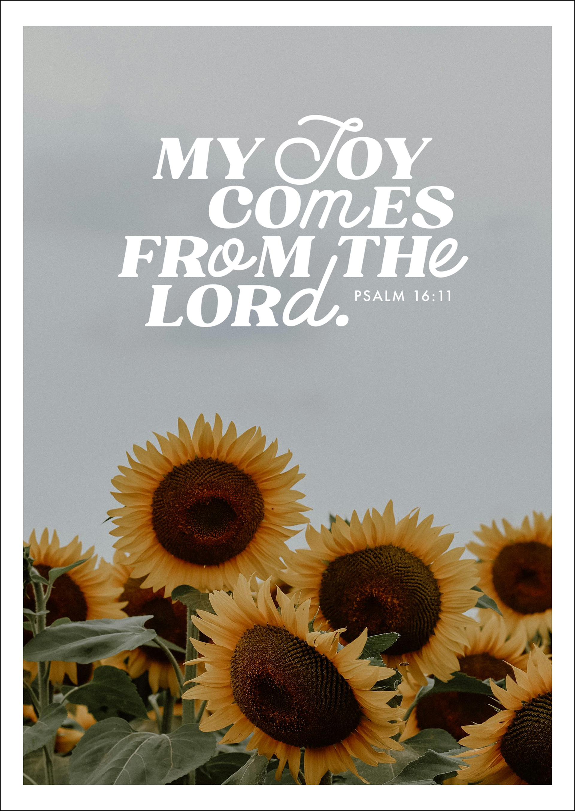 Strahlende Sonnenblumen und eine kraftvolle Aussage aus Psalm 16 machen dieses Poster zu einem echten Lichtblick. Das Motiv vermittelt Lebensfreude, Hoffnung und Dankbarkeit. Perfekt für Räume, die eine freundliche, positive Atmosphäre erhalten sollen – oder als Geschenk für besondere Menschen.