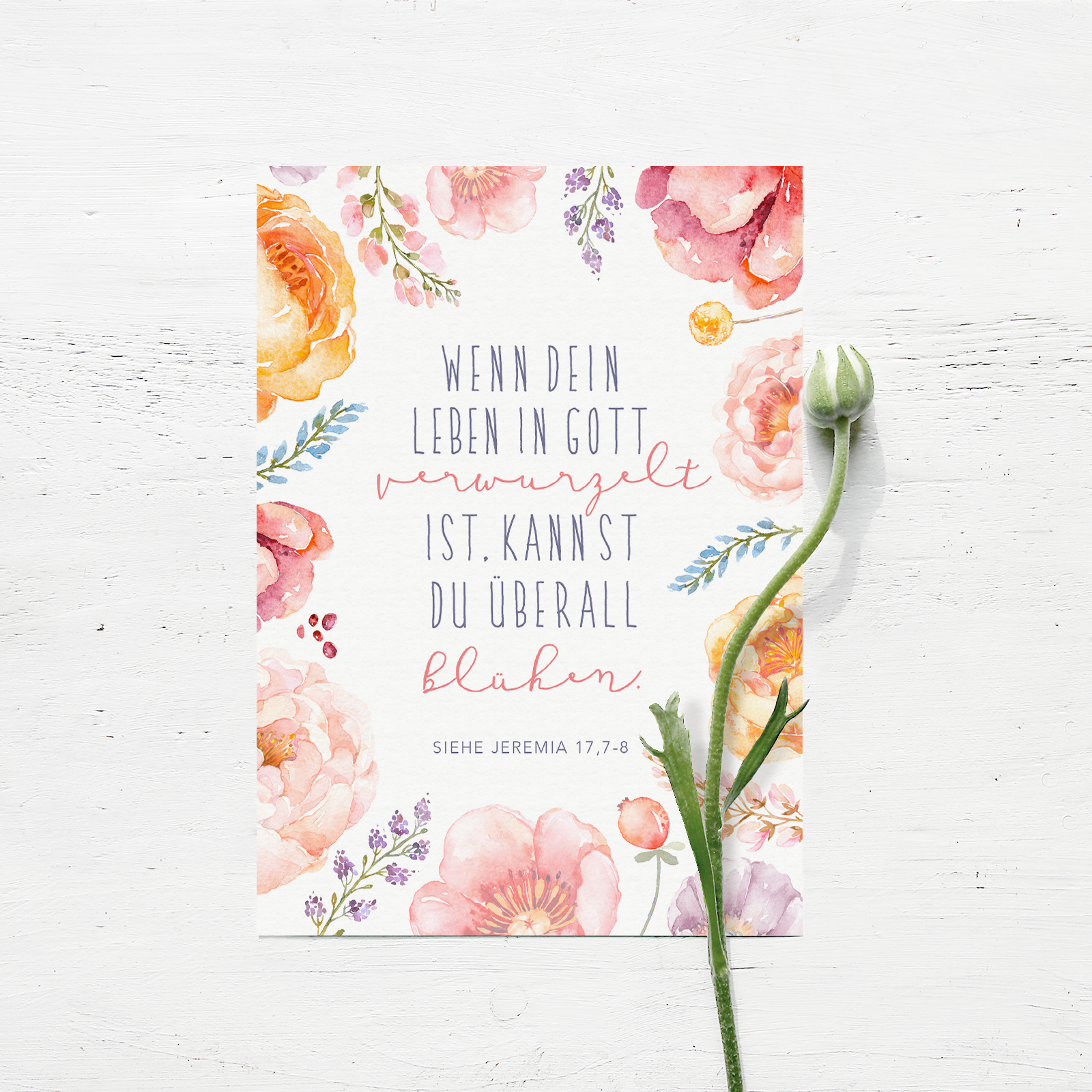 „Wenn dein Leben in Gott verwurzelt ist, kannst du überall blühen. – Siehe Jeremia 17,7–8“