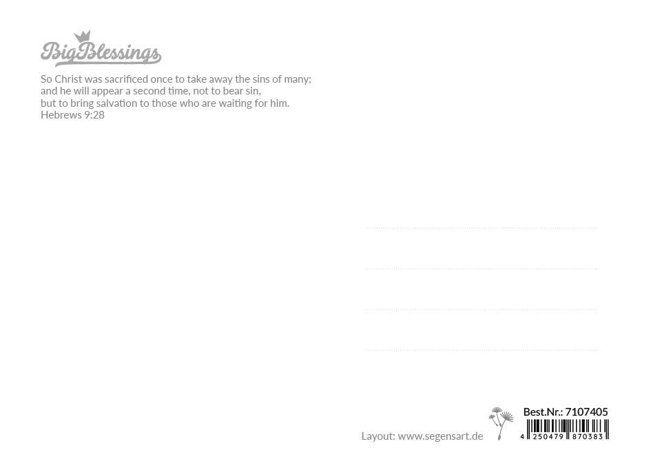 Text auf der Rückseite: So Christ was sacrificed once to take away the sins of many;