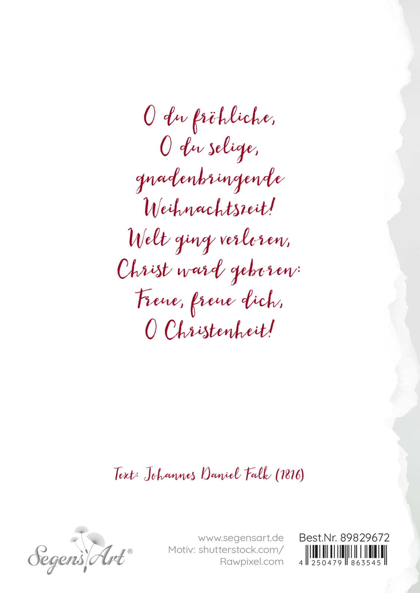 O du fröhliche, O du selige, gnadenbringende Weihnachtszeit! Welt ging verloren, Christ ward geboren: Freue, freue dich, O Christenheit!