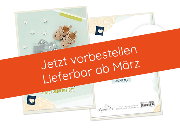 Kleiner Mensch, du bist sehr geliebt.Rückseite: Mit ewiger Liebe habe ich dich geliebt; darum habe ich dich zu mir gezogen aus lauter Gnade. Jeremia 31,3