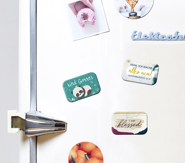 ist das Motiv des Magneten zu sehen, auf der Rückseite befindet sich ein passendes Bibelzitat.