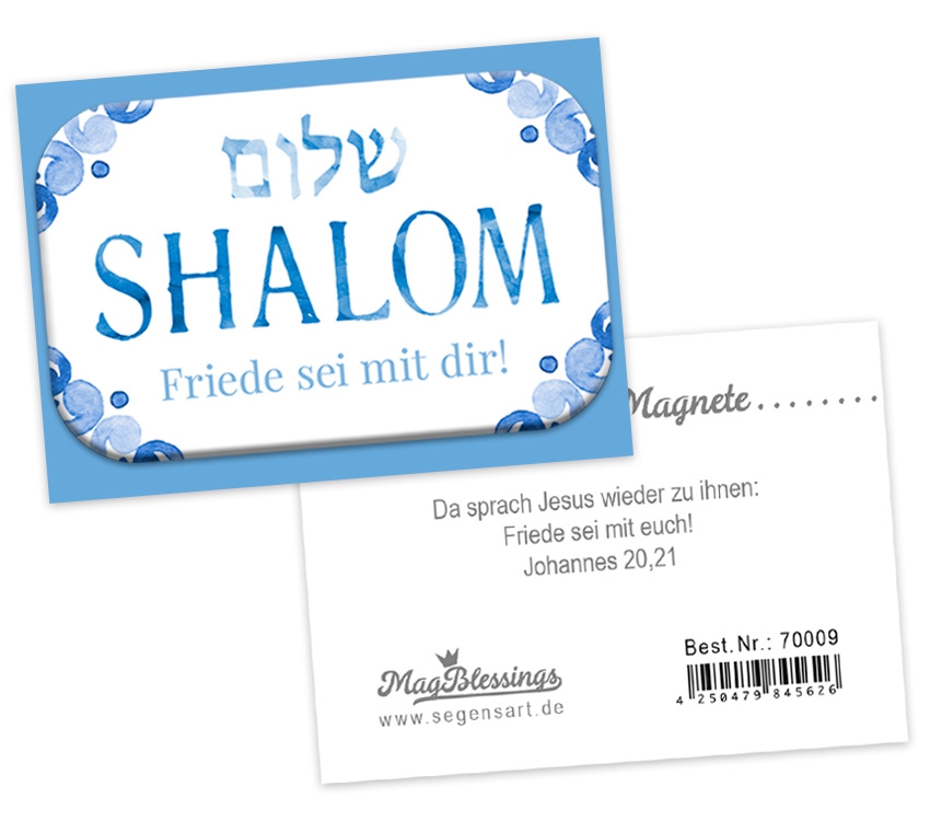 Der Magnet und ein farbiges Kärtchen mit Bibelzitat auf der Rückseite sind zusammen in einer Folie verpackt.