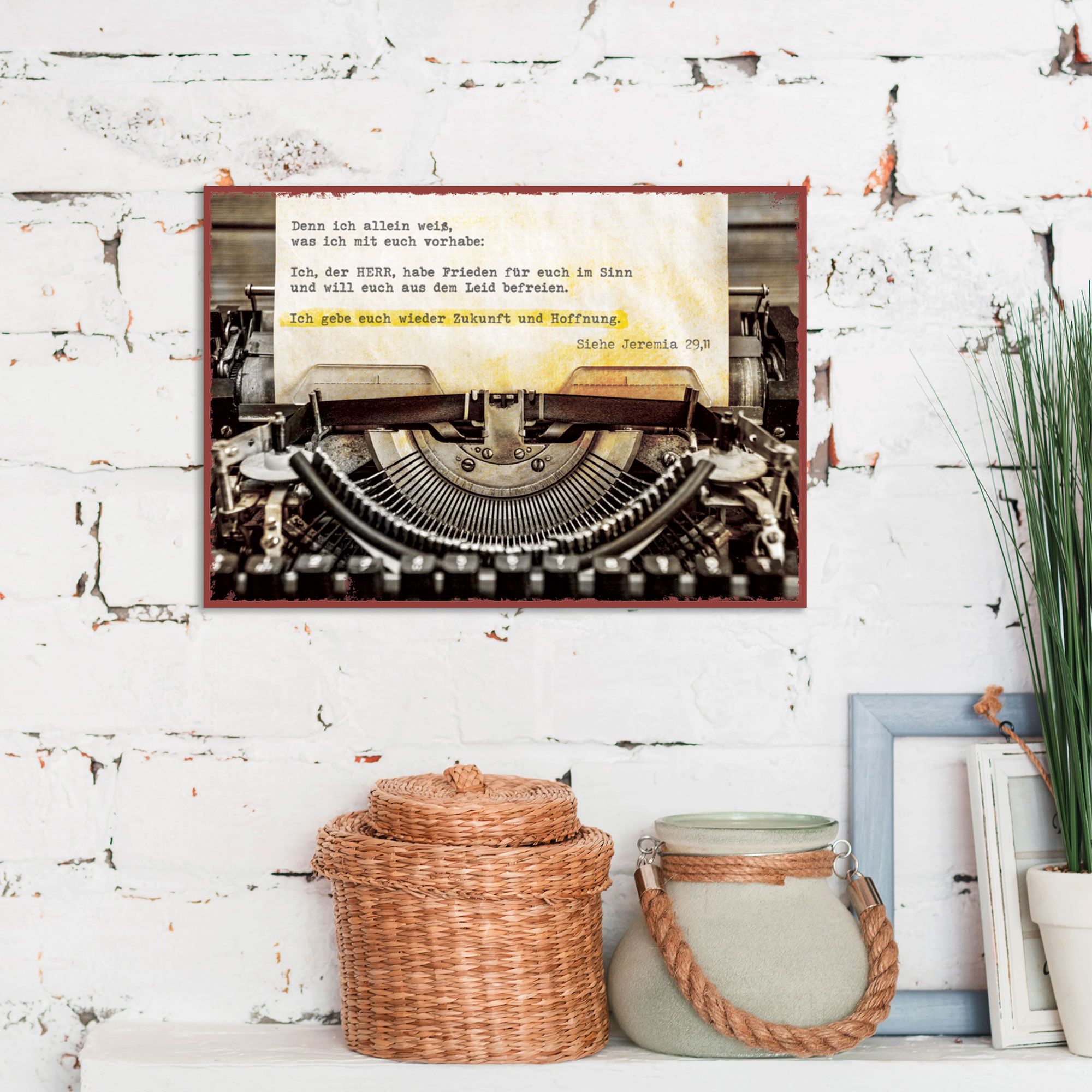 Metallschild im Vintage-Look im Format 27 x 19 cm, für trockene Innenräume geeignet, zum AufhängenHandmade - Die Metallschilder werden hier vor Ort von uns produziert.Text:Denn ich allein weiss,was ich mit euch vorhabe: Ich, der HERR, habe Frieden für euch im Sinn und will euch aus dem Leid befreien. Ich gebe euch wieder Zukunft und Hoffnung. Siehe Jeremia 29,11
